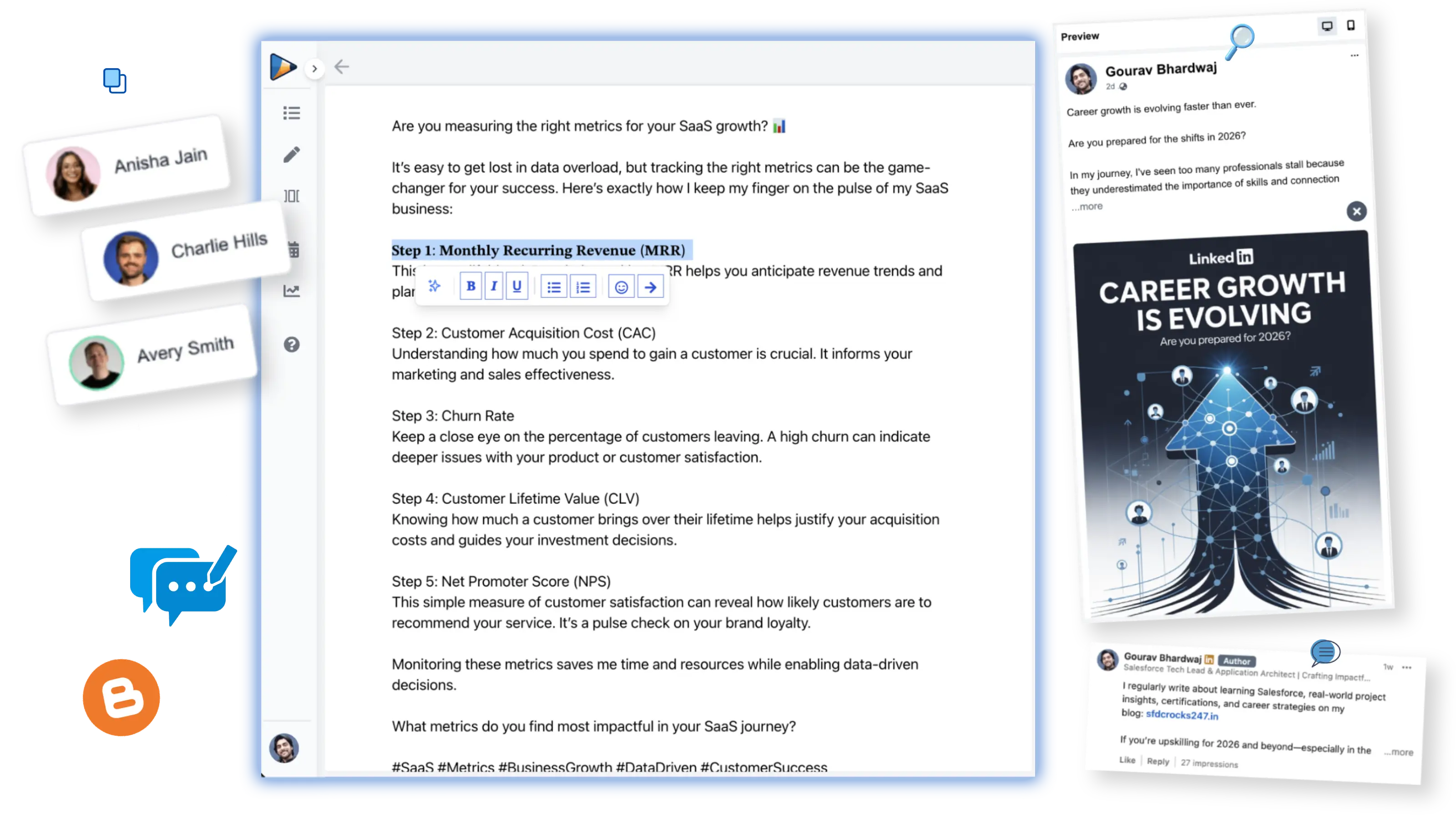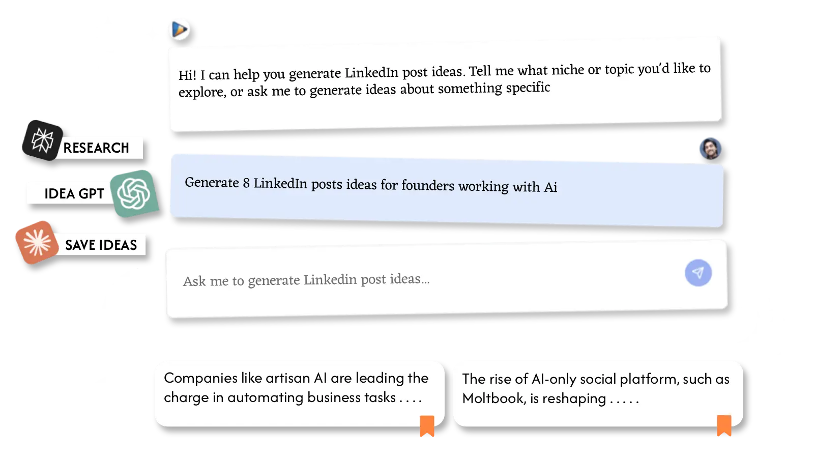 Transform blogs, URLs, prompts, or saved ideas into polished, LinkedIn-ready posts that are built for engagement.